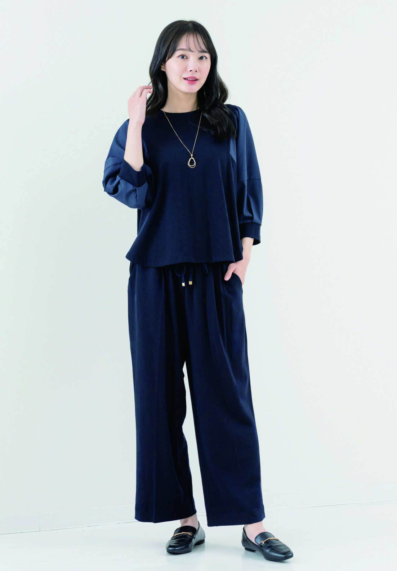 デニムライクウエストドロスト7分袖チュニック /税込¥6,589